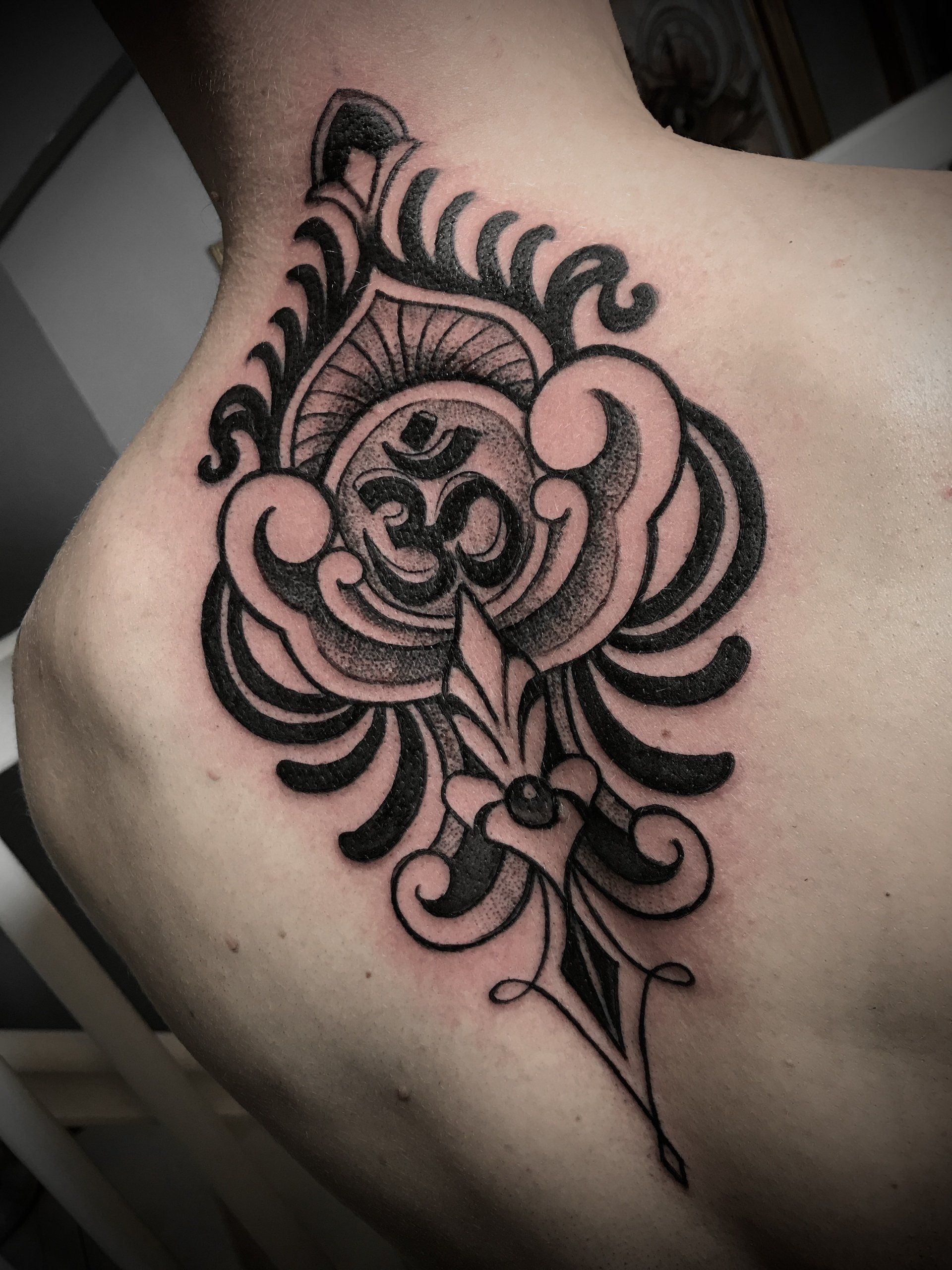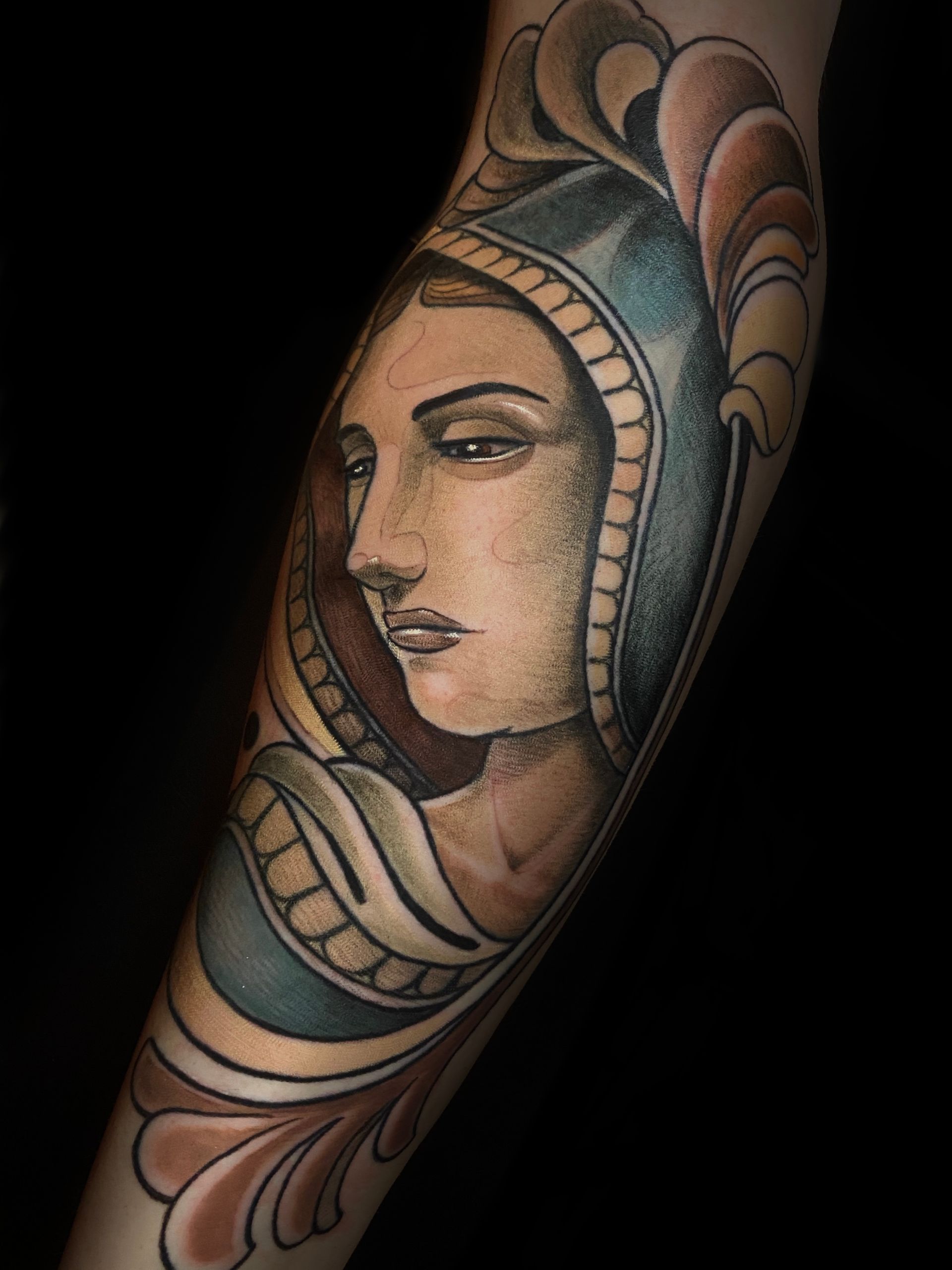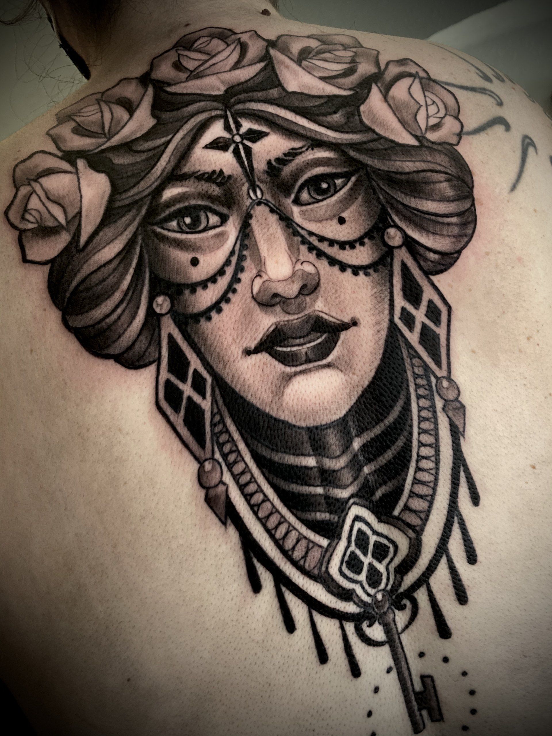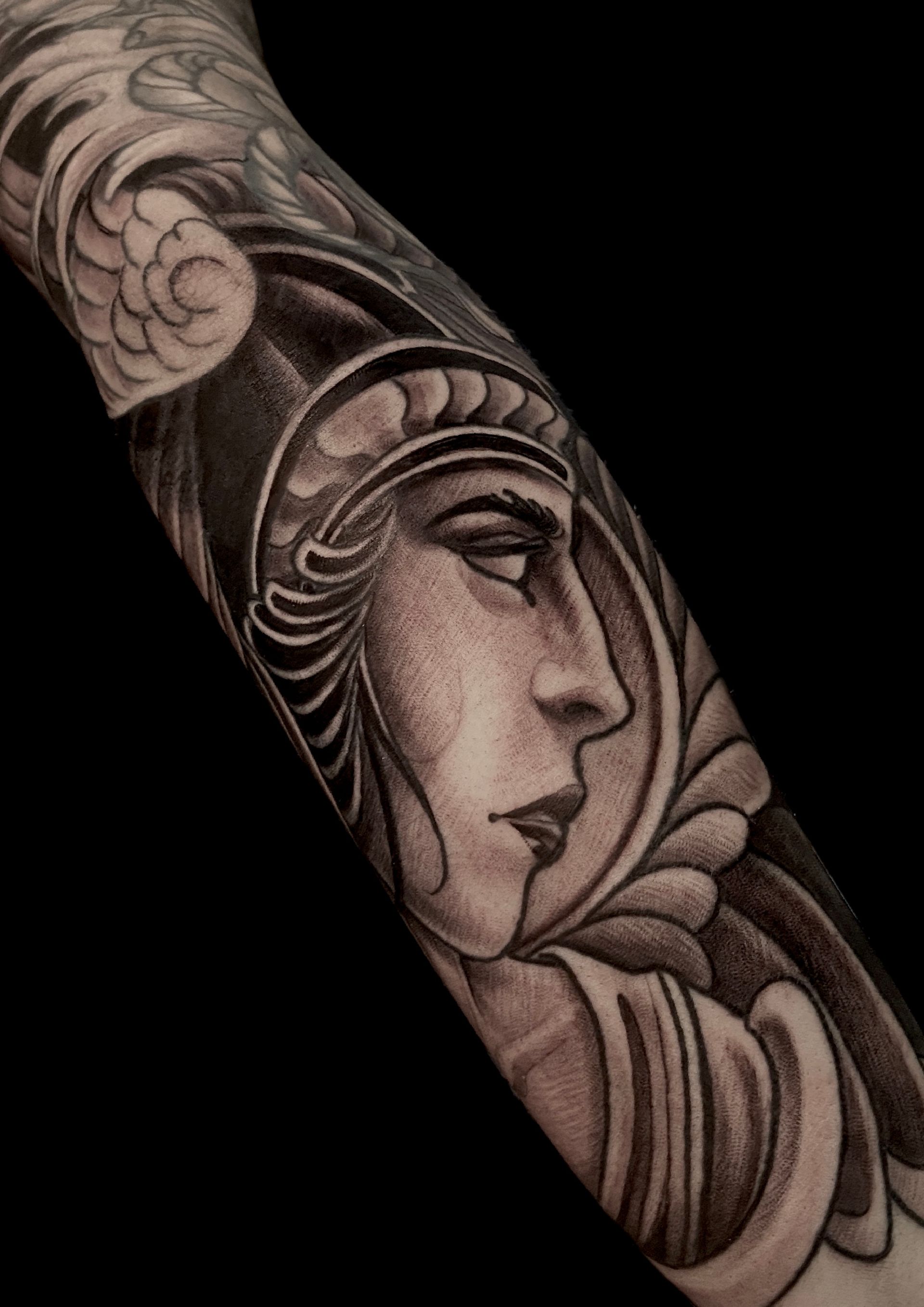 Neotraditional Neouveau Black and Grey Tattoo, Blackwork Tattoo,