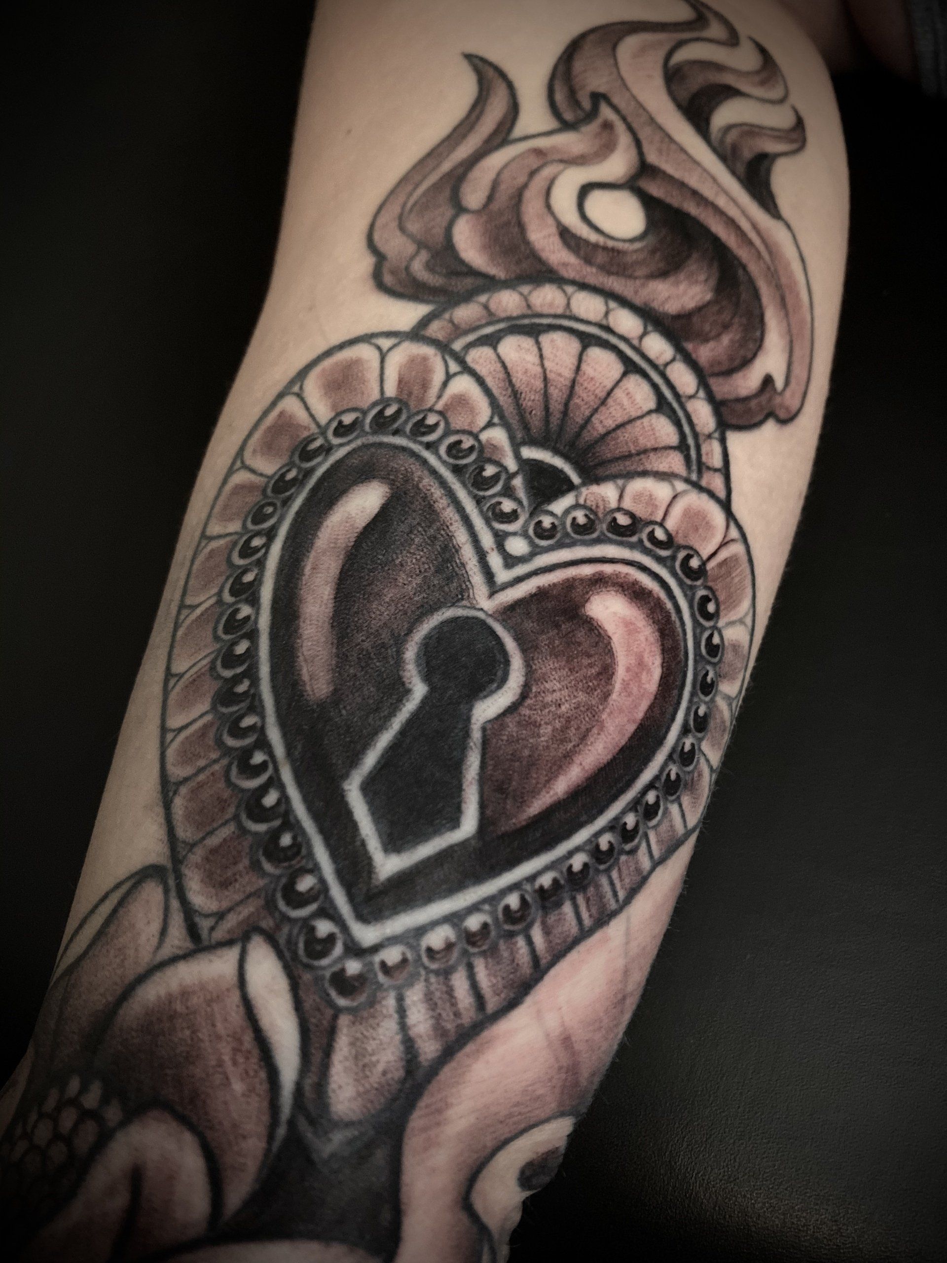 Herz Tattoo, Heart Tattoo, Sacred Heart Tattoo, Key Tattoo