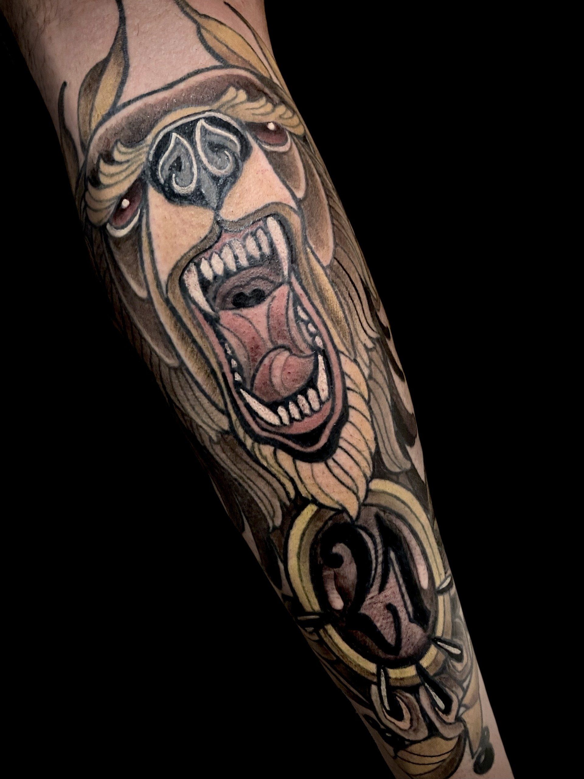 Neotraditional Neouveau Black and Grey Tattoo, Blackwork Tattoo, Lion Tattoo, Löwe Tattoo, Ornamental Tattoo